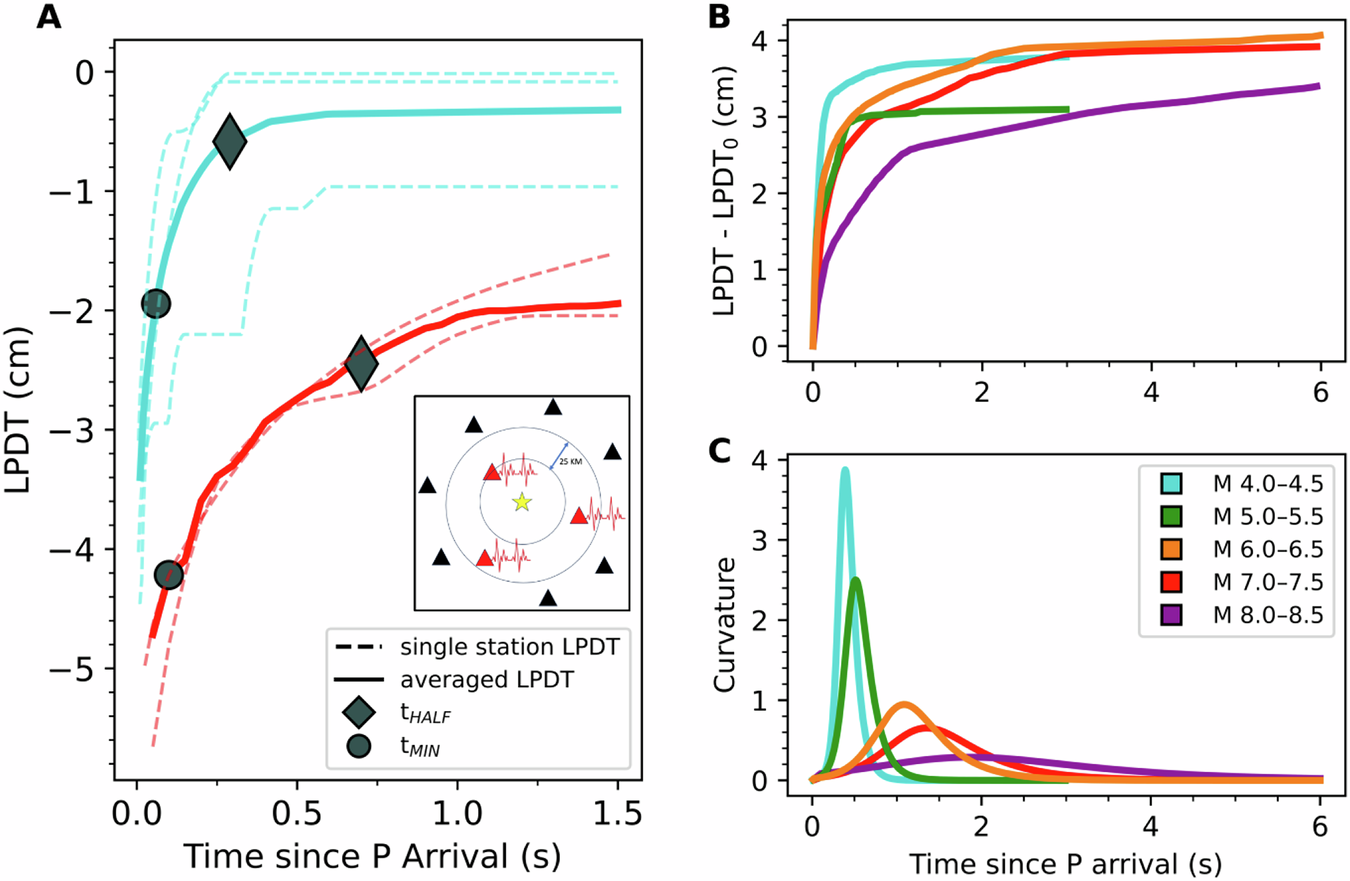 Il loro approccio, sviluppato già in lavori precedenti, consiste nell’analisi dei primi due o tre secondi dell’onda P. Per eliminare gli effetti di distorsione dovuti al fatto che le onde si attenuano con la distanza dalla sorgente, gli autori hanno selezionato per ciascun terremoto solo le stazioni sismiche collocate in una fascia circolare intorno all’epicentro.