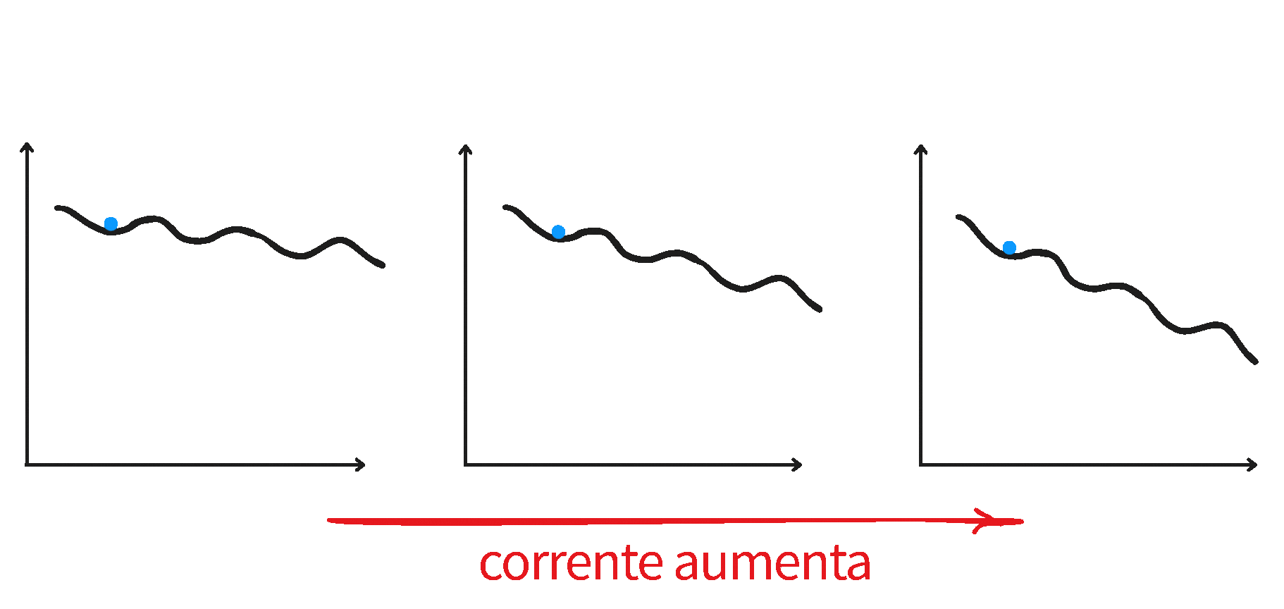 Per capire meglio, possiamo immaginare che il circuito super conduttivo si trovi davanti un paesaggio energetico simile a una sequenza di rampe a U di uno skatepark, ma in discesa, come nella figura sotto. In inglese viene chiamato washboard, cioè tavola da bucato.